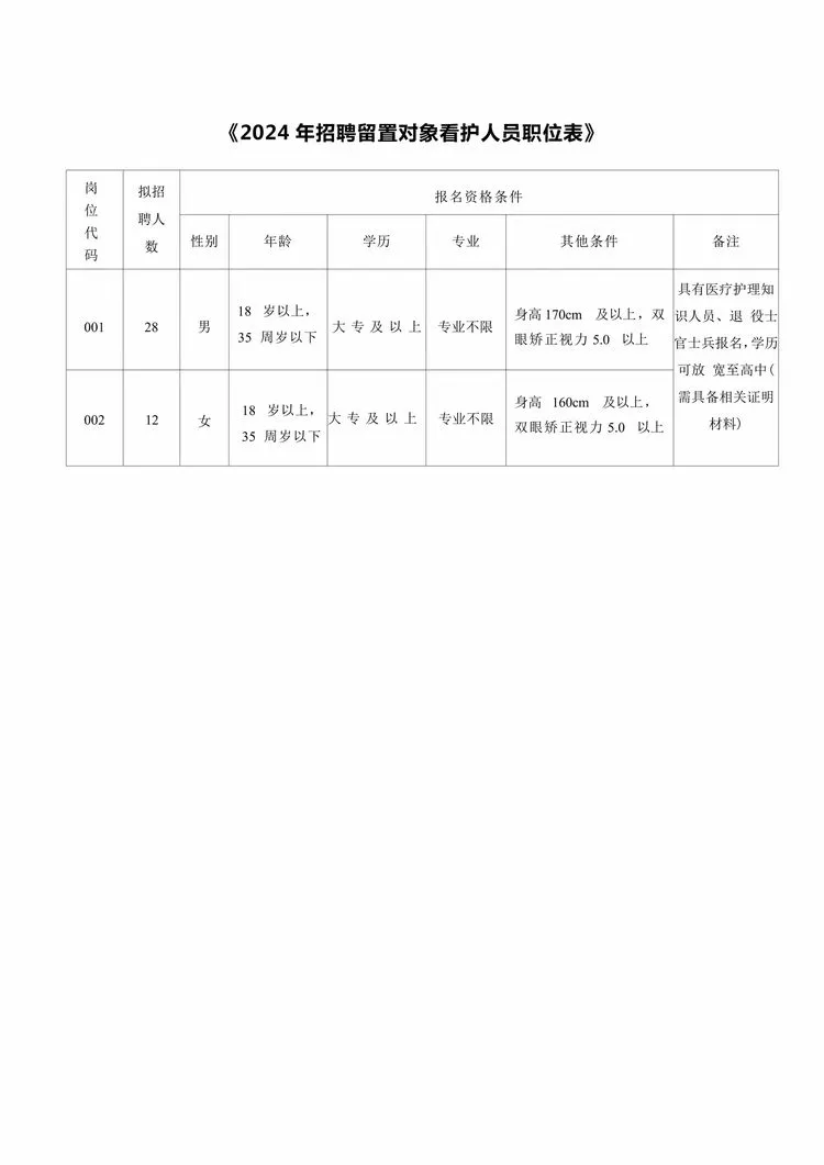 ??? 附件:1.《2024年招聘留置對象看護(hù)人員職位表》