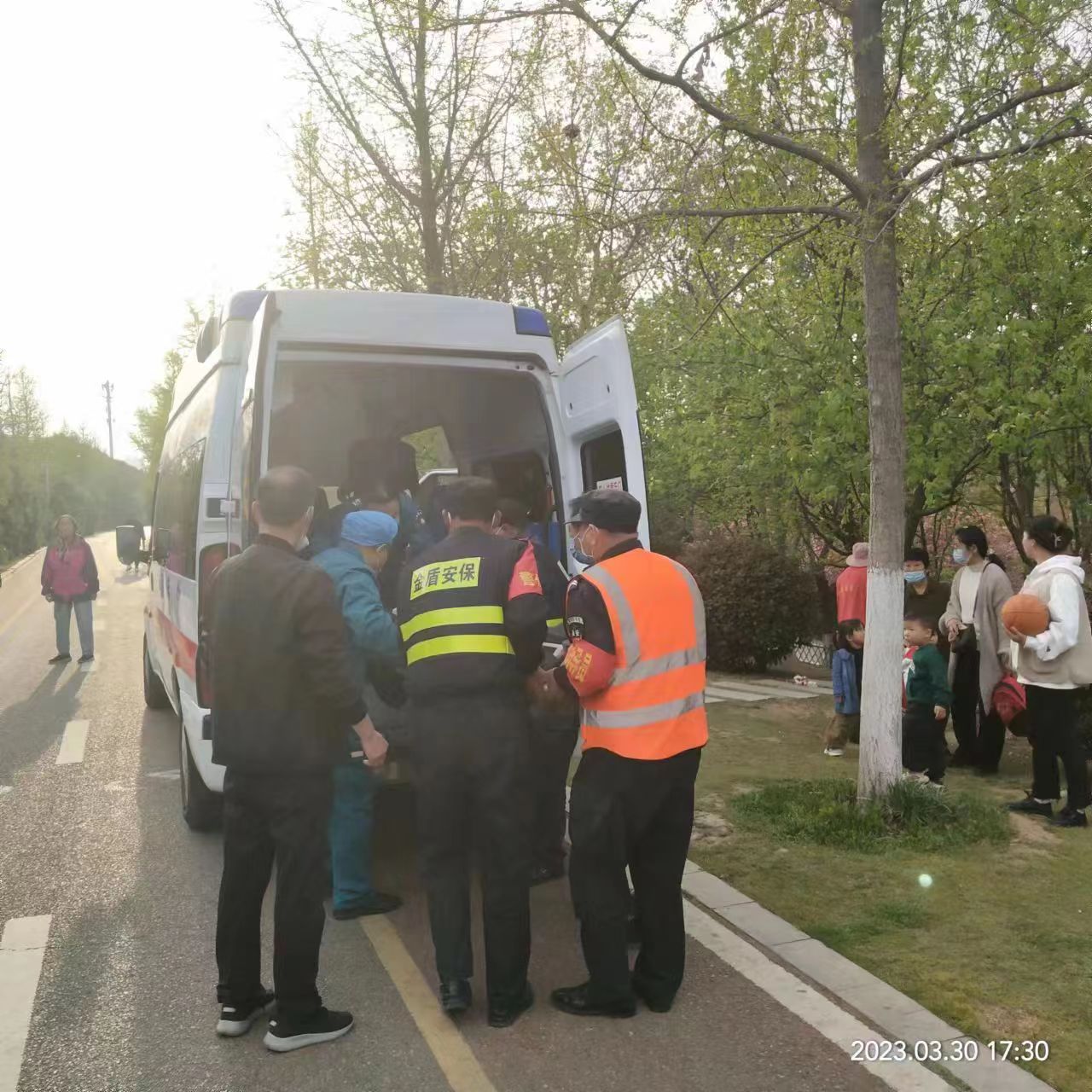 十幾分鐘后,救護(hù)車趕到現(xiàn)場,成戰(zhàn)攻協(xié)助醫(yī)護(hù)人員將老人抬上了救護(hù)車。這一幕被附近的市民看到,他們對保安樂于助人的行為贊不絕口。