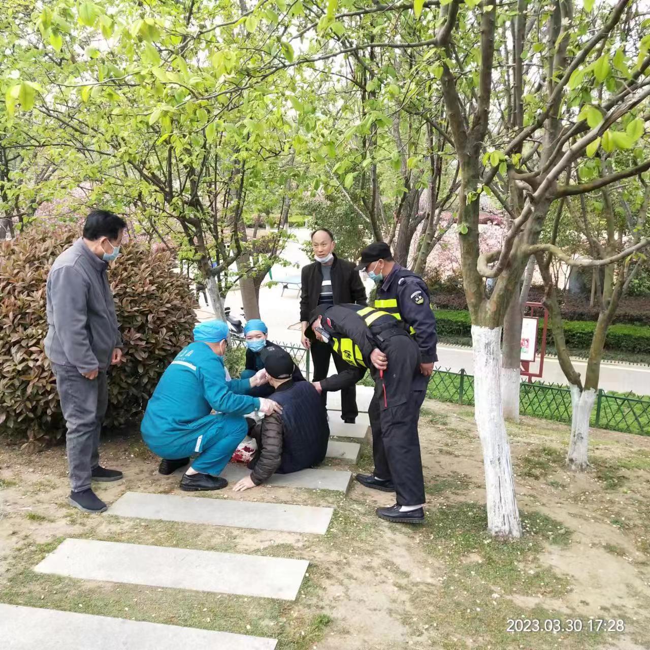 3月30日下午,一位70多歲的老人在漯河市沙澧河風(fēng)景區(qū)老虎灘公園下臺階時不慎摔倒。此時,正在附近巡邏的我公司分隊長成戰(zhàn)攻,突然發(fā)現(xiàn)這位老人滿臉是血癱坐在地,就趕緊上前詢問并立即拔打120急救電話。