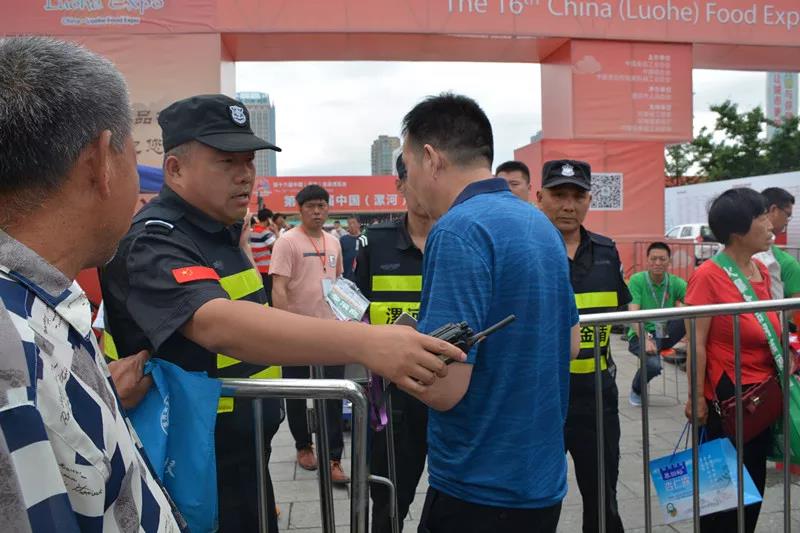 ? ? ? 安保期間,漯河市金盾保安服務(wù)有限公司抽調(diào)2300人次特勤隊(duì)員,負(fù)責(zé)活動(dòng)進(jìn)行期間的安全工作及交通疏導(dǎo)工作。同時(shí)在展區(qū)入口處安裝安檢門10臺(tái),手持金屬探測(cè)儀10臺(tái),用來盤查可疑人員,防止危險(xiǎn)品被帶進(jìn)展館,確保食博會(huì)有序進(jìn)行。同時(shí)出動(dòng)巡邏車26輛,清障車4輛。并成立了會(huì)場(chǎng)總指揮部、分指揮部、交通保障組、武裝巡邏組,加強(qiáng)會(huì)場(chǎng)及周邊的治安巡邏防控,強(qiáng)化展會(huì)期間的各項(xiàng)安保措施,以確保食博會(huì)的安全。