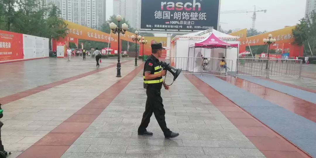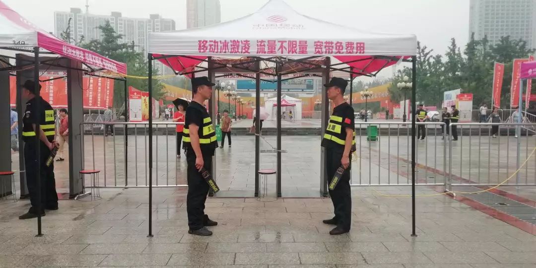 不畏炎熱的金盾保安,排查可疑人員,確保會(huì)場(chǎng)井然有序
