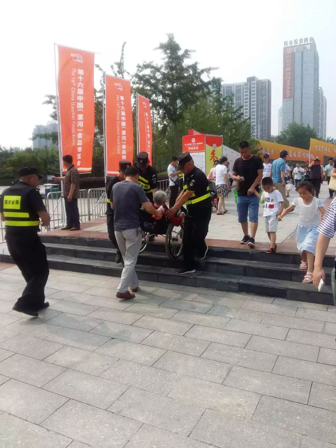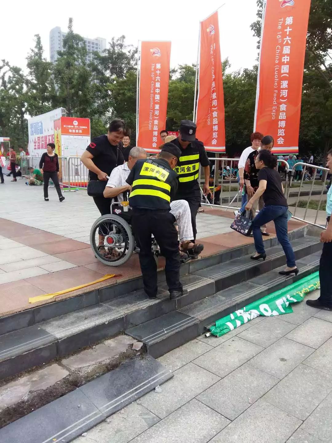 食博會(huì)期間,幫助多名行走不便老人上下臺(tái)階,多次得到市民的贊賞和肯定