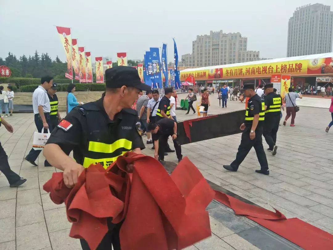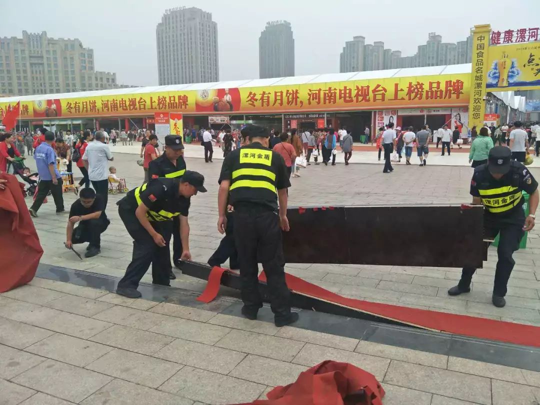 ? ? ? ?為確保食博會(huì)安全、有序的進(jìn)行,漯河市金盾保安服務(wù)有限公司將做好“食博會(huì)”期間安全保衛(wèi)作為首要任務(wù),超前謀劃、精心部署、及時(shí)成立“食博會(huì)安全保衛(wèi)工作領(lǐng)導(dǎo)小組”,制定周密的安全保衛(wèi)工作方案和應(yīng)急處置預(yù)案;堅(jiān)持“統(tǒng)一指揮、密切協(xié)作”的原則,公司領(lǐng)導(dǎo)、各責(zé)任區(qū)域負(fù)責(zé)人、后勤保障人員及全體保安員共同堅(jiān)守崗位、攻堅(jiān)克難,全體動(dòng)員、全力以赴,圓滿完成了食博會(huì)期間各項(xiàng)安保任務(wù)。